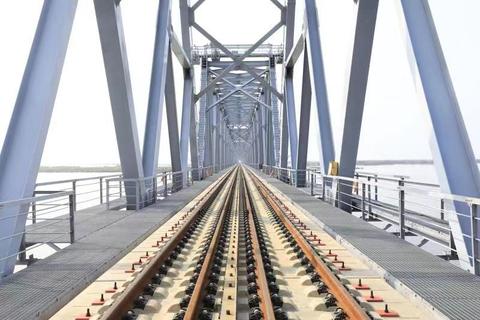 海外网北京8月17日电 (记者严冰)从国铁集团获悉,8月17日9时58分,在同江中俄黑龙江铁路大桥施工现场,随着中俄两国准轨接口最后一组轨道夹板安装...